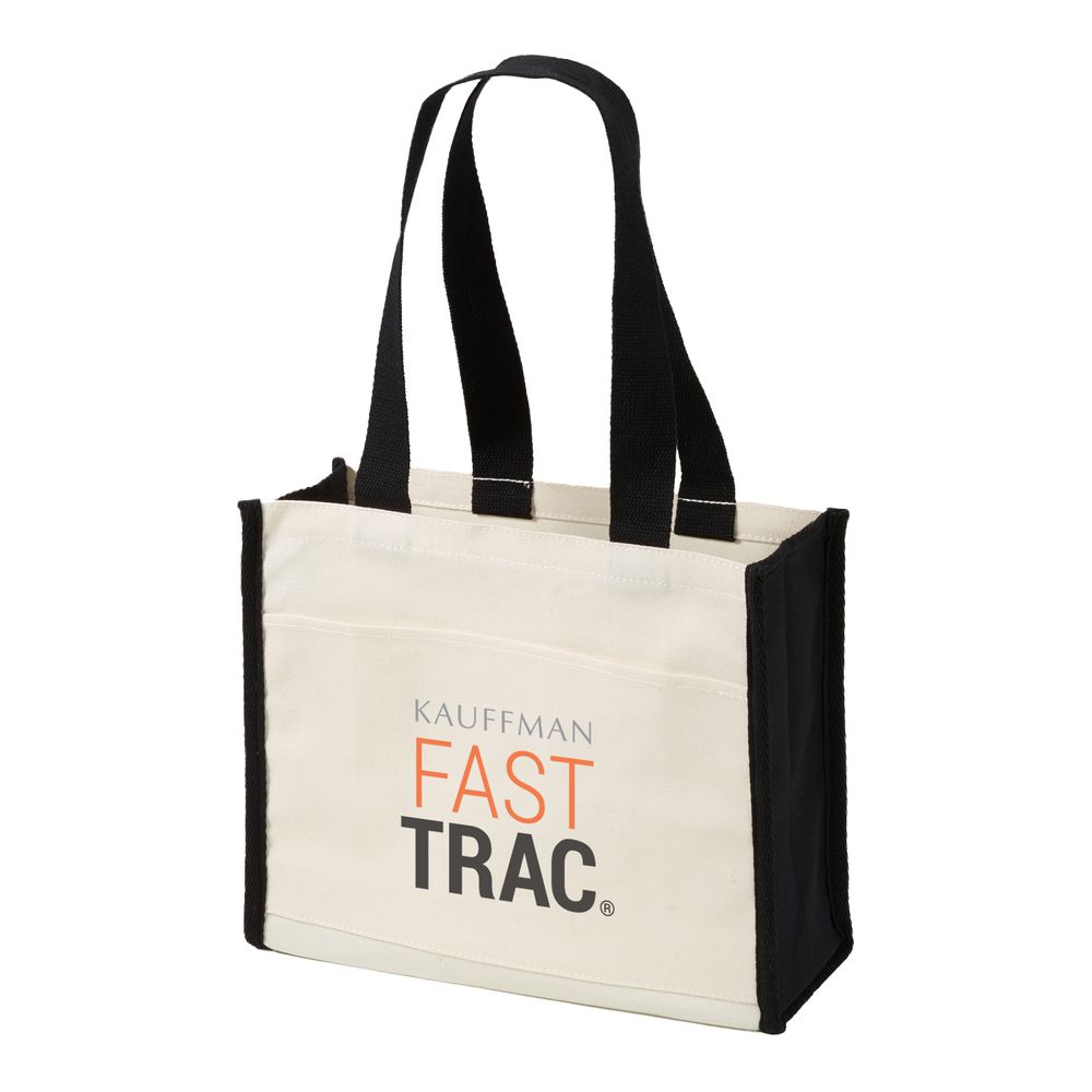 14 Oz. natural cotton canvas with large main compartment. Wide front pocket.